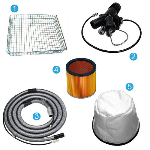 成品內部過濾耗材: 4) 紙過濾SH-180 (Φ188*H180mm/橘/紙)*1只 5) 布過濾袋(布A) *1只 ………………………………………………………………………………………………………………………………………… 選購配件: 6) B型軟管架*2只(選配) 7) 高密度紙過濾*1只(選配) 8) 124集塵布袋(830*350mm / H13過濾等級/白) (吸粉塵用)*1只(選配) ………………………………………………………………………………………………………………………………………… |