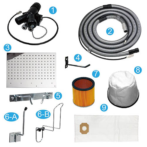 B型軟管架*1組(7-A) 成品內部過濾耗材: 7) 紙過濾SH-180 (Φ188*H180mm/橘/紙)*1只 8) 過濾布袋(布A)*1只 9) 124集塵布袋(830*350mm / H13過濾等級/白) (吸粉塵用)*1只 ………………………………………………………………………………………………………………………………………… 選購配件: 10) Y型軟管架*1組(選購配件) 11) 高密度過濾*1只(選購配件) ………………………………………………………………………………………………………………………………………… |