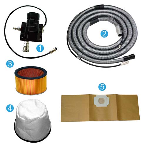 ………………………………………………………………………………………………………………………………………… 配 件: 1) 單孔監控開關*1set 2) 二合一集塵管(5M)*1pc 成品內部過濾耗材: 3) 紙過濾SH-110(Φ188*H110mm/橘/紙)*1只 4) 布過濾袋(加長型布袋)*1只 5) 3018紙袋(770*260mm) *1pc ………………………………………………………………………………………………………………………………………… 選購配件: 6) 3018集塵布袋(770*260mm/H13過濾等級) *1pc ………………………………………………………………………………………………………………………………………… |