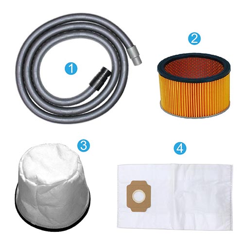 單管集塵管總成 (4M)*1條 成品內部過濾耗材: 2) 紙過濾SH-110(Φ188*H110mm/橘/紙)*1只 3) 布過濾袋(加長型布袋)*1 4) 3024集塵布袋(520*300mm/H13過濾等級)(吸粉塵用)*1只 ………………………………………………………………………………………………………………………………………… 選購配件: 5) 多功能掛架-A型*1 (選配) ………………………………………………………………………………………………………………………………………… |