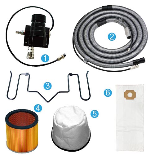成品內部過濾耗材: 4) 紙過濾SH-180 (Φ188*H180mm/橘/紙)*1只 5) 布過濾袋(布B) *1只 6) 124 集塵布袋(830*350mm / H13過濾等級/白) *1只 ………………………………………………………………………………………………………………………………………… 選購配件: 7) 軟管籃*1只(選配) 8) 高密度紙過濾*1只 (選配) ………………………………………………………………………………………………………………………………………… |