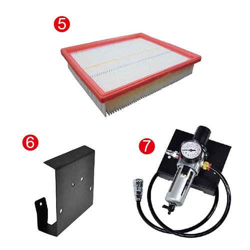 兩種過濾器清潔粉塵模式,電動及自動振塵系統可供選擇。 8) 可搭配方形過濾棉(吸液體用),當液體達滿水位時,立即停機提醒客人清潔桶內液體。 9) 可搭配軟管收納架方便收納軟管。(選購配件) 10) 可搭配濾水器組(含軟管收納架),過濾空壓機內風管粉塵。(選購配件) 11) 可搭配工具架組與集塵器整合,可自行調整工具架高度,內含掛勾可放置砂紙、多功能掛勾、工具掛勾,讓使用者有完善的收納及工作輔助方案,增加操作上的便利性。(選購配件) 12) 可搭配置物盤於工具架組內,讓使用者有完善的收納。(選購配件) 13) 可搭配一般塑膠配件吸取液體,增加操作上的便利性。(選購配件) (限定乾濕兩用機型) ………………………………………………………………………………………………………………………………… |