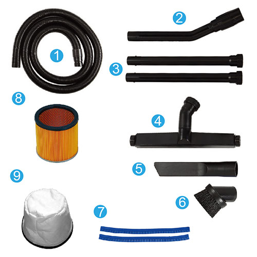 成品內部過濾耗材(請定期更換): 8) 紙過濾SH-180 (Φ188*H180mm/橘/紙) (乾式吸塵用)*1只 9) 布過濾袋(布B/JS10系列用) *1只 ………………………………………………………………………………………………………………………………………… 選購配件: 10) 1.5〞軟管 (10尺/3M)+卡式大接頭+小接頭*1組(簡單配件) 11) 1.5〞扁吸嘴 (小接頭用/ L300mm)*1支(簡單配件) 12) HEPA高密度過濾器 (Φ188*H180mm/白/可水洗) *1只(選配) 13) 124 集塵布袋(830*350mm /白) (吸粉塵用)*1只(選配) ………………………………………………………………………………………………………………………………………… |