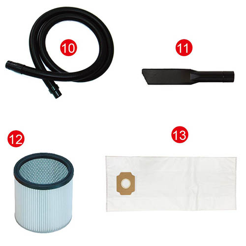 8) 紙過濾SH-180 (Φ188*H180mm/橘/紙)*1只 9) 布過濾袋(布A/JS12.15系列用) *1只 ………………………………………………………………………………………………………………………………………… 選購配件: 10) 1.5〞軟管 (10尺/3M)+卡式大接頭+小接頭*1組 (簡單配件) 11) 1.5〞扁吸嘴 (小接頭用/ L300mm)*1支 (簡單配件) 12) HEPA高密度過濾器(Φ188*H180mm/白/可水洗) *1只 (選配) 13) 124集塵布袋(830*350mm/白) (吸粉塵用)*1只(選配) ………………………………………………………………………………………………………………………………………… |