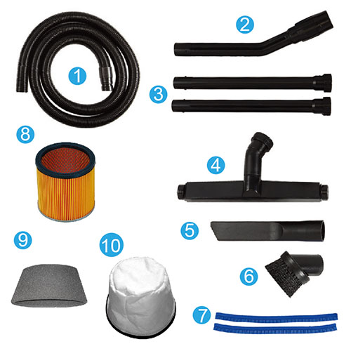 8) 紙過濾SH-180/吸粉塵用 (Φ188*H180mm/橘/紙)*2只 9) 海綿套/吸液體用(450*150*T12mm)*2只 10) 布過濾袋(22加布袋) *1只 ………………………………………………………………………………………………………………………………………… 選購配件: 11) 1.5〞軟管 (10尺/3M)+卡式大接頭+小接頭*1組 (簡單配件) 12) 1.5〞扁吸嘴 (小接頭用/ L300mm)*1支(簡單配件) 13) HEPA高密度過濾器(Φ188*H180mm/白/可水洗) *2只(選配) 14) 124集塵布袋(830*350mm /白) (吸粉塵用)*1只(選配) ………………………………………………………………………………………………………………………………………… |